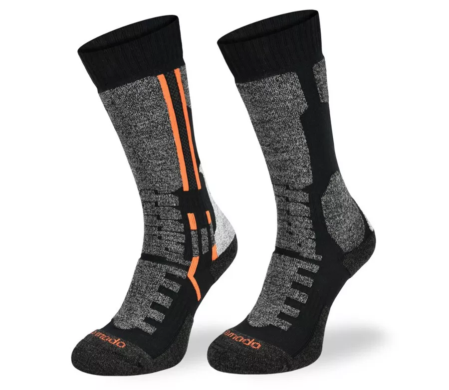 Comodo MTB2 to długie, funkcjonalne skarpety, które sprawią, że jazda motocyklem będzie o wiele przyjemniejsza! Materiał z technologią Polycolon jest lekki i jednocześnie wytrzymały. Dzięki właściwościom hydrofobowym szybko odprowadza wilgoć, zapewniając stopom idealną suchość. Konstrukcja skarpety obejmuje 5 strategicznie rozmieszczonych stref, które zostały starannie zaprojektowane, aby zwiększyć komfort jazdy. Jednocześnie stabilizują stopę, co zmniejsza nacisk wywierany przez but i chroni materiał przed uszkodzeniami. Comodo MTB2 zapewnią Ci komfort i swobodny styl podczas Twoich motocyklowych przygód! Opis techniczny: - długie, funkcjonalne skarpety motocyklowe - średniej grubości konstrukcja - mniejszy nacisk na buty - idealne do jazdy na motocyklu - lekki i wytrzymały materiał - szybkie odprowadzanie wilgoci - materiał: 40% polipropylen Polycolon, 35% poliamid, 20% polipropylen, 5% elastan 5 strategicznie rozmieszczonych stref dla maksymalnego komfortu - strefa nacisku dla rozłożenia obciążenia - strefa wzmocnienia dla ochrony podbicia - strefa kształtu dla dopasowania do kształtu stopy - strefa z płaskimi szwami chroniąca przed otarciami - strefa kontroli dla utrzymania skarpety na miejscu