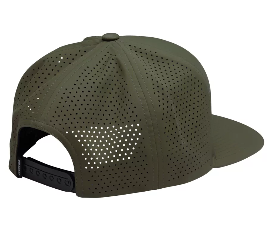Czapka z daszkiem sześciopanelowym, zapięciem typu snapback, perforowanymi panelami z tyłu i tkaną naszywką z przodu.