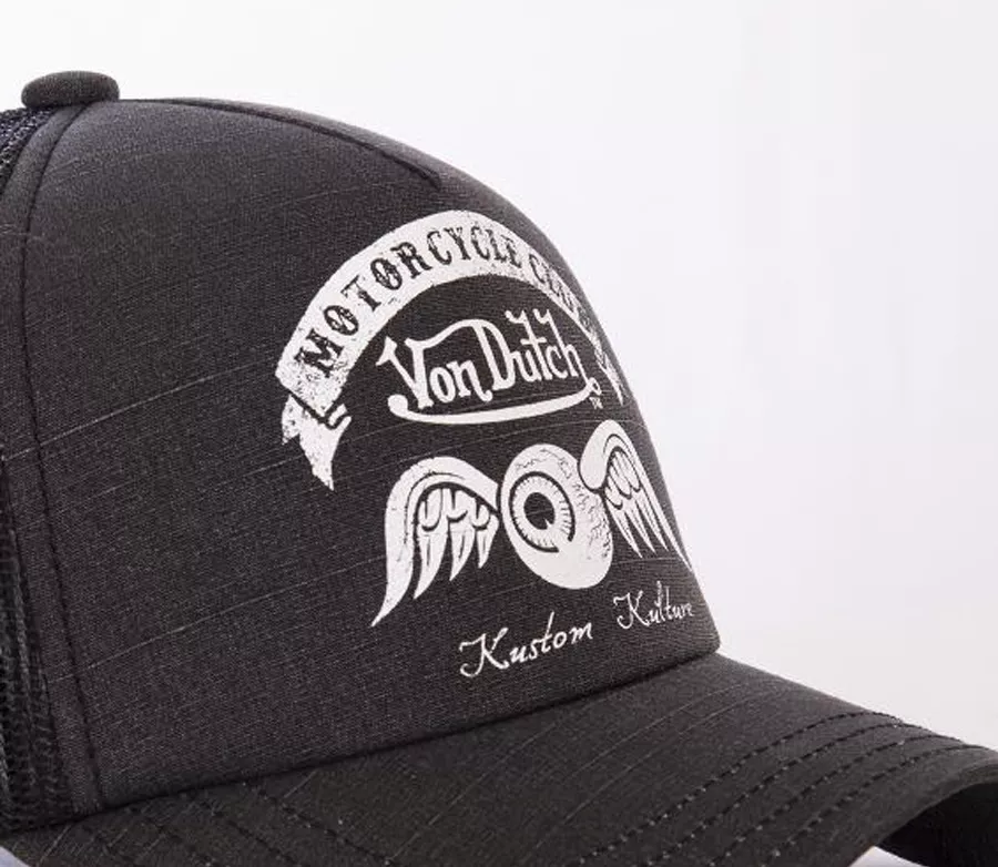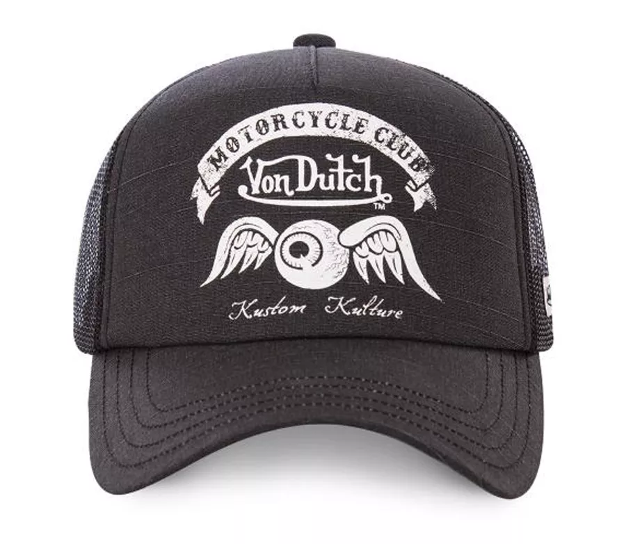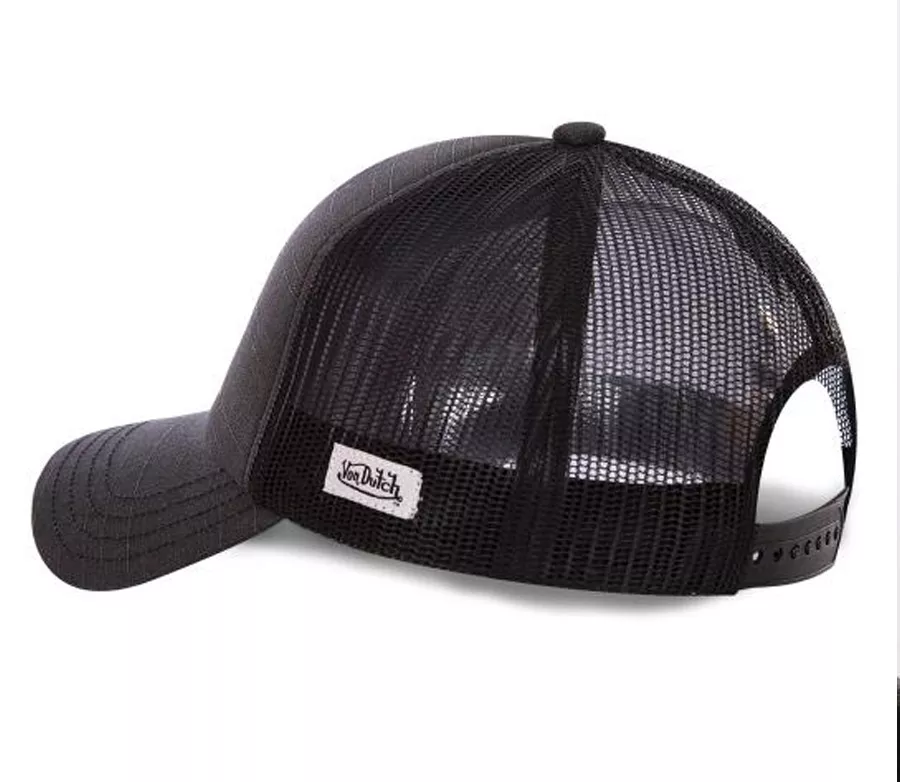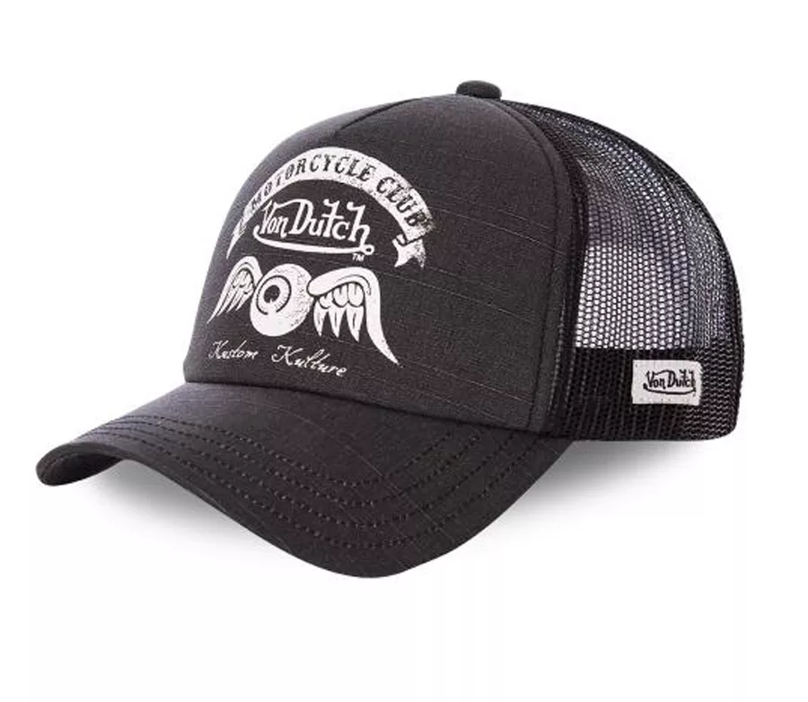 - Czapka Von Dutch dla kobiet/mężczyzn z przewiewnej siateczki. - Klasyczny krój czapki typu „trucker”. - Regulowany rozmiar dzięki plastikowemu paskowi z tyłu - pasuje na obwód głowy od 50 do 61 cm. - Materiał: 57% poliester, 43% bawełna