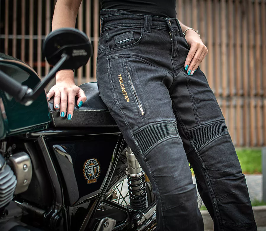 Damskie jeansy motocyklowe Kevlar Trilobite 661 Parado slim fit czarne poziom 2