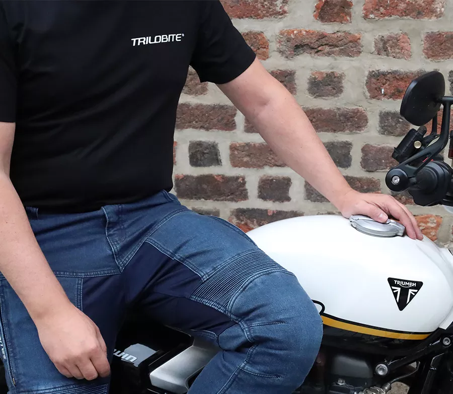 Materiał (warstwa zewnętrzna) • TRI-STRETCHER® PRO 5.0 DENIM to specjalna mieszanka bawełny, elastanu i poliestru. Ochrona: • Strefy uderzeniowe wzmocnione drugą warstwą TRI-STRETCHER® PRO 5.0 DENIM • Ochraniacze kolan i bioder CE poziomu 2 w zestawie • Ochraniacze kolan z regulacją wysokości • Certyfikat CE zgodnie z normą EN 17092-2:2020, klasa AAA Ergonomiczne cechy: • 2 kieszenie z przodu, 2 kieszenie z tyłu • Warstwa stretchu w okolicy kolan, talii z tyłu i kroku • Podwójne szlufki na pasek z przodu • Podwyższona talia Wentylacja: • Kieszenie wentylacyjne na udach • Oddychający stretch w okolicy siedziska Parado Doublelayer AAAA są dostarczane w pudełku wraz z wodoodporną torbą, która świetnie nadaje się do podróży. Właściwości materiałowe Tri-Stretcher® PRO 5.0 Denim Podstawowym założeniem było opracowanie tkaniny, która wyróżniałaby się komfortem, bezpieczeństwem, a jednocześnie spełniałaby wysokie wymagania dotyczące przecięcia, zużycia, rozdarcia, odporności na ścieranie i odporności chemicznej produktu końcowego podczas testów certyfikacyjnych CE. Tri-Stretcher® PRO 5.0 Denim to specjalna mieszanka bawełny, elastanu i poliestru opatentowana przez Bikers Crown s.r.o., która jest wyłącznym właścicielem materiału, a także projektantem dżinsów motocyklowych Trilobite. Dzięki ostatnim przełomom w dziedzinie włókien syntetycznych dżinsy motocyklowe mogą być lżejsze niż kiedykolwiek wcześniej. Nowa generacja włókien syntetycznych i polietylenowych pozwala na mieszanie poliestru, nylonu, elastanu i innych przędz, w tym naturalnych, w zupełnie nową, wyrafinowaną tkaninę do produkcji dżinsów motocyklowych Trilobite. Tri-Stretcher® PRO 5.0 Denim to nowoczesna tkanina techniczna, która jest przyszłością jazdy motocyklem. Wykonany jest z mieszanki materiałów z rodziny poliamidów, takich jak nylon i aromatycznych poliamidów, takich jak aramid lub włókna poliuretanowe wykonane z elastanu, a także zawiera naturalną tkaninę bawełnianą. Ta tkanina jest wyjątkowa pod względem niesamowitej wytrzymałości i jednocześnie niskiej wagi. Tri-Stretcher® PRO 5.0 Denim to „inteligentny zespół” różnych włókien splecionych razem, który ochroni Cię w razie wypadku w taki sam sposób, jak pełny skórzany garnitur, ale bez uszczerbku dla wygody. Te jeansy są wykonane z dwóch warstw najtrwalszego materiału Tri-Stretcher 5.0 Denim. Jedna warstwa tego materiału spełnia wymagania certyfikacji CE na poziomie AAA. Dlatego połączenie dwóch warstw tego materiału stworzyło najbezpieczniejsze jeansy na świecie do tej pory.