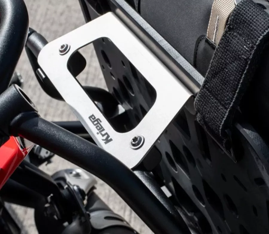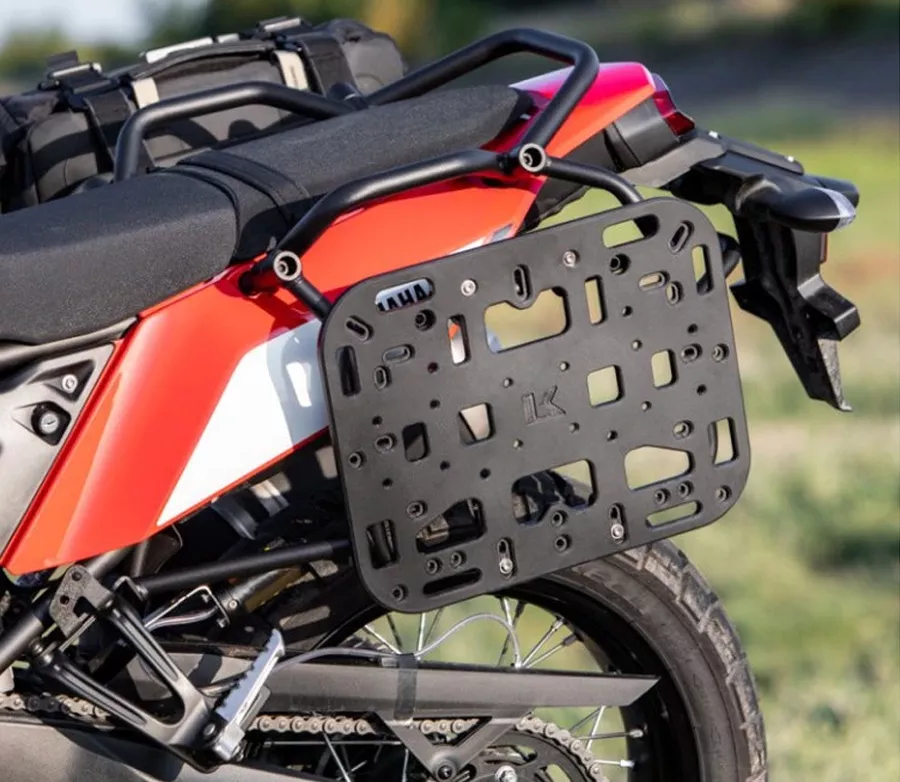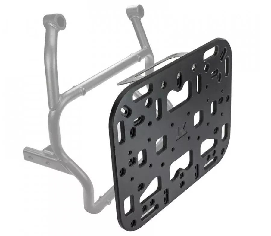 - Specjalnie przystosowany do montażu na oryginalnych uchwytach bagażnika. - Praktycznie niezniszczalna płyta nylonowa obrabiana na maszynach CNC. - Do mocowania worków Kriega lub kanistrów Rotopax. - Zawiera adapter wymagany do montażu po stronie wydechu. Wymiary: 390 x 300 x 10 mm Waga: 1450g