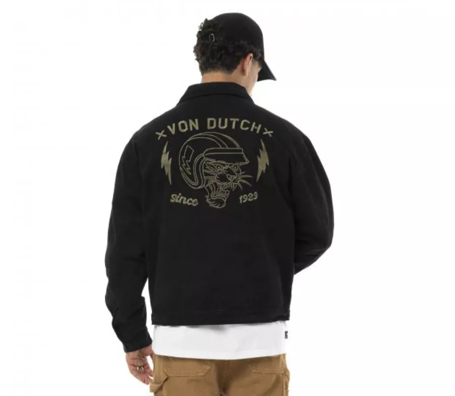 Kurtka Von Dutch z wyrazistymi naszywkami i logo na plecach. Zainspirowana amerykańską kulturą garażową, łączy estetykę kultowej marki z miejskim charakterem. Najważniejsze cechy: - Wytrzymały materiał z wyrazistymi detalami i naszywkami - Logo Von Dutch w widocznym miejscu na plecach - Klasyczny krój zapewniający wygodę na co dzień - Zapięcie na zamek błyskawiczny z przodu, boczne kieszenie do przechowywania drobiazgów - Stylowy dodatek dla osób poszukujących wyrazistych ubrań z duszą