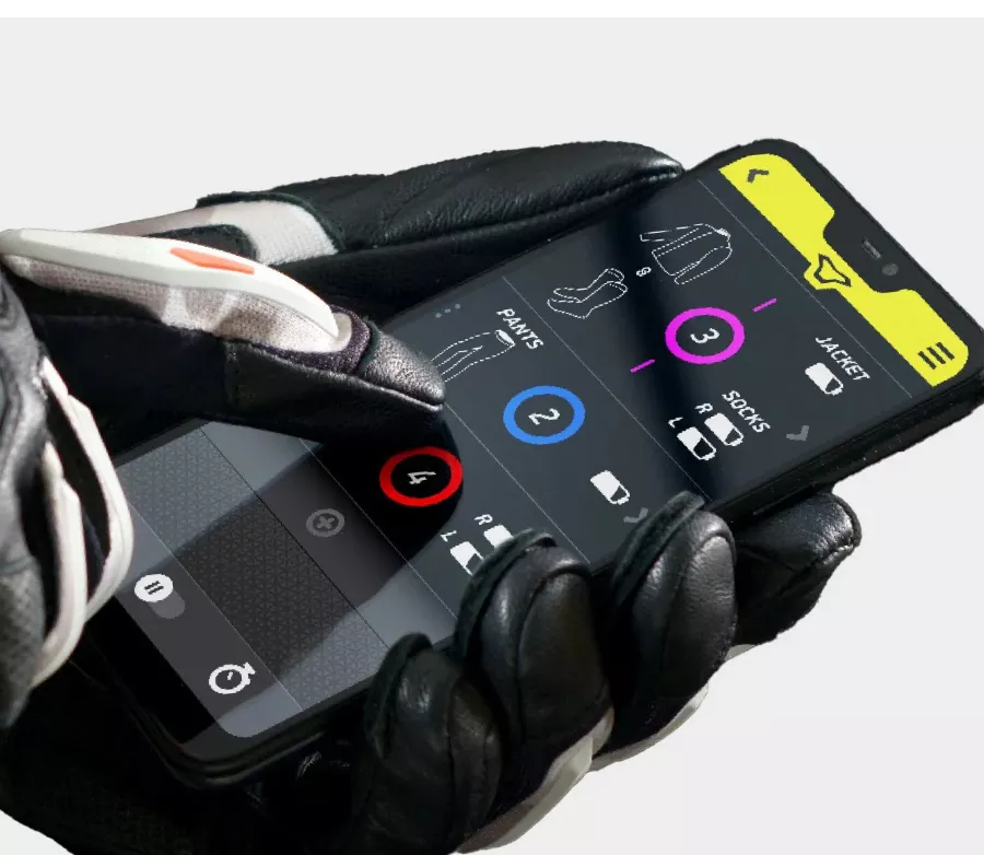 Spodniami można sterować również za pomocą aplikacji MACNA® Heated, która pozwala zarządzać wszystkimi kompatybilnymi produktami grzewczymi jedną ręką, bez konieczności rozpinania ubrań. Po połączeniu przez Bluetooth® masz pełną kontrolę nad podgrzewanym sprzętem bezpośrednio na telefonie.
