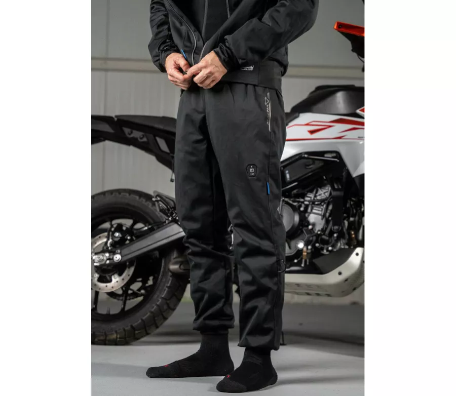 Dual Power Technology™ umożliwia wybór między zasilaniem 7,4 V a 12 V. Energia może być pobierana z akumulatora przechowywanego w kieszeni lub bezpośrednio podłączonego do akumulatora motocykla. Spodnie są wyposażone w duże złącze Easy Connect Plug do podłączenia źródła zasilania oraz mniejsze złącza w kostkach do podłączenia podgrzewanych skarpet.