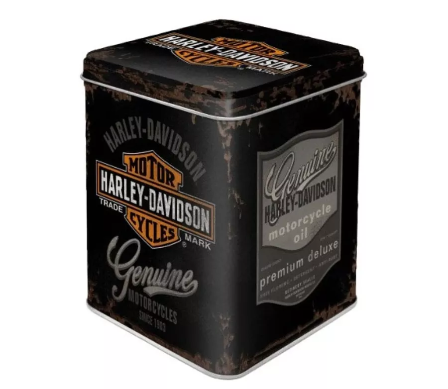 Retro puszka na herbatę z napisem to oryginalna dekoracja. Ta puszka z napisem „Harley-Davidson Genuine” to świetny prezent dla wszystkich miłośników zabawnych dekoracji w stylu retro. Wykonana jest z wysokiej jakości blachy. Jeśli szukasz oryginalnej dekoracji, ta puszka będzie idealnym wyborem. Wymiary: 73 x 94 x 73 mm Materiał: blacha