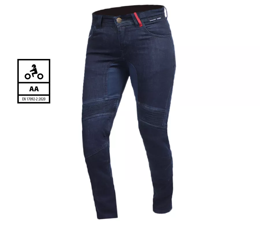 - wykonany z denimu (bawełna, lycra) - Ochraniacze kolan CE poziom 2 w zestawie - kieszeń na włożenie ochraniaczy bocznych (brak w zestawie) - wzmocnienie z włókien aramidowych w okolicy kolan i pleców - 2 kieszenie z przodu - 2 tylne kieszenie - 1 kieszeń na monety - rozciągliwy panel nad kolanami - regulowana wysokość nakolanników - podwyższona talia dla maksymalnego komfortu - oddychający panel pomiędzy udami - podwójna szlufka na pasek - Odzież z certyfikatem CE zgodnie z normą EN 17092-3:2020 AA