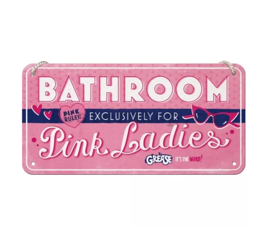 Wiszący znak „Grease” – Różowa łazienka dla kobiet