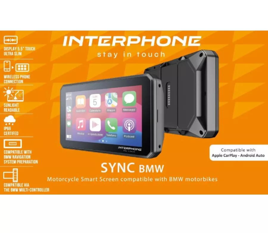 NC55B to 5,5-calowy inteligentny wyświetlacz Interphone, opracowany specjalnie dla motocykli BMW. To zaawansowane urządzenie łączy w sobie kompaktową i elegancką konstrukcję, maksymalną czytelność w każdych warunkach oraz niezrównaną łatwość montażu: montuje się go bezpośrednio na oryginalnym uchwycie BMW Navigator, bez użycia kabli i narzędzi. System zasilany jest bezpośrednio z podstawy, co zapewnia szybką i łatwą instalację typu plug-and-play.