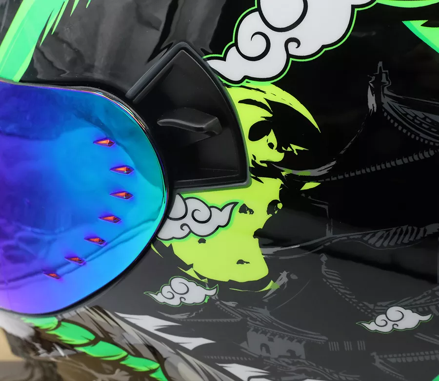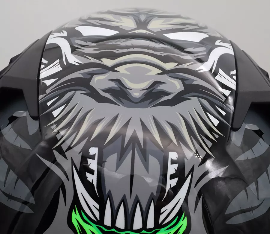 Bezpieczeństwo • Wytrzymała skorupa z poliwęglanu ABS • 1 rozmiar skorupy dla solidnej i kompaktowej konstrukcji • 3 rozmiary EPS dla precyzyjnej ochrony głowy • Przezroczysta pleksiglas z powłoką odporną na zarysowania • Pinlock 30 w opakowaniu przeciwmgielnym • Homologacja ECE 22.06 • Homologacja DOT Komfort • Waga 1500 ± 50 g • Zintegrowana blenda przeciwsłoneczna z powłoką odporną na zarysowania • Wyjmowana i nadająca się do prania wyściółka • Łatwe dopasowanie okularów • Wyjmowany deflektor podbródka Wentylacja • Efektywna wentylacja podbródka • Górna wentylacja dla optymalnego przepływu powietrza • Kask zaprojektowany z myślą o stabilnym odprowadzaniu ciepła podczas dłuższych przejażdżek Dodatkowe wyposażenie • Zielony wizjer Revo • Zielony spojler Revo • Dodatkowy przezroczysty wizjer w zestawie • System szybkiej wymiany wizjera • Sterowanie blendą przeciwsłoneczną w mechanizmie wizjera • Zapięcie na klamrę mikrometryczną